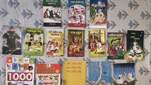 With funding and logistical support from Shreekara World Foundation, mobile library boxes were curated and distributed within just six days. Each box was filled with a mix of Assamese and English books, including picture books, folktales, biographies, poetry, and beginner vocabulary tools. The selection featured works by renowned Assamese authors such as Lakhinath Bezbaruah, Abha Bora, and Dr. Dilip Kumar Kolita, as well as biographies of inspiring personalities like Sachin Tendulkar, Ratan Tata, Subhash Chandra Bose, Rabindranath Tagore, Kanaklata Barua, and Mamoni Raisom Goswami. To promote learning through play, each box also contained Ludo and Snakes & Ladders game sets.