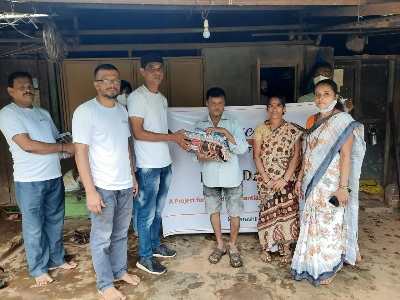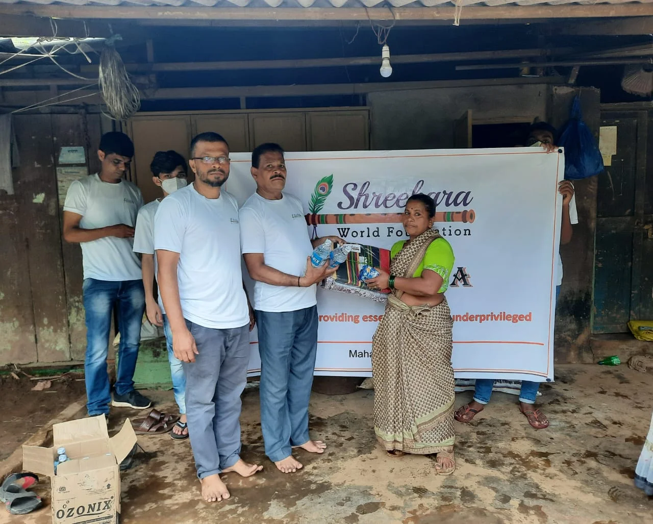 Shreekara World Foundation identified Raigad, Ratnagiri and Sindhudurg districts to provide necessities. Our on ground volunteers have been working tirelessly around the clock to reach out to people and provide essentials. Our volunteers provided immediate assistance to the affected people, followed by the distribution of new clothing to men, women and children, including satranjis (mats), blankets, towels, chappals, drinking water, and basic medicines and utensils.